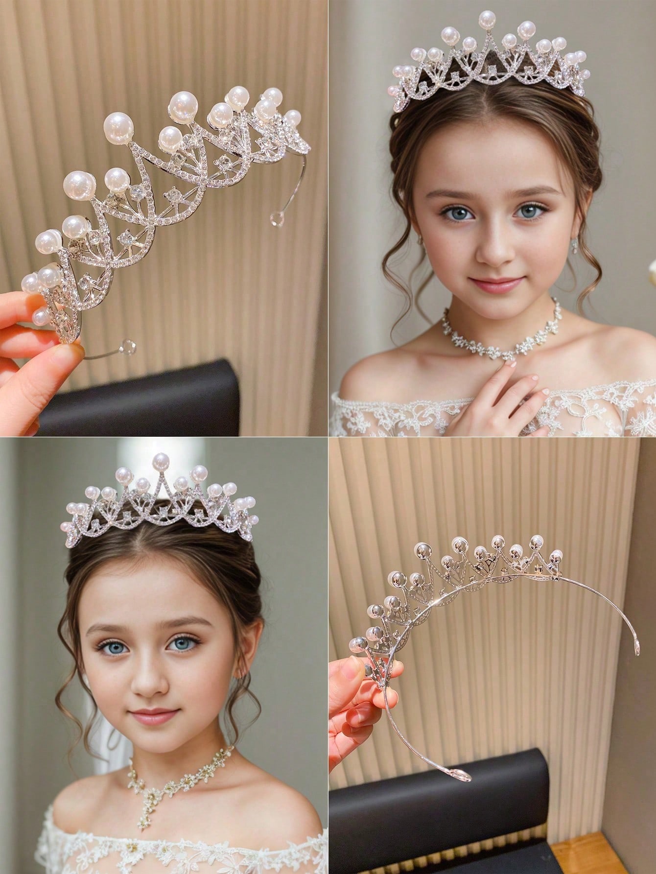 حزام الشعر على شكل تاج أنيق وراقي أبيض القطعة الواحدة